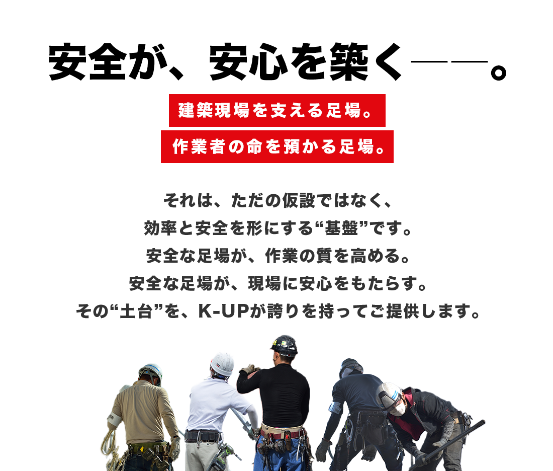 私たちK-UPは、これからも安全で確かな足場工事を安定してご提供いたします。
