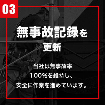 当社は、福井県越前市を中心に活動している足場工事業者です。 10代からこの仕事をスタートさせた若くて経験豊富な職人が活躍しており、鳶の仕事に誇りをもって安全に取り組んでいます。